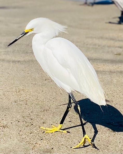 Some of the pelicans are surprisingly social, wandering quite close and tilting their heads as though curious about the humans wandering through their morning world, and a few of them have even posed obligingly when I lift my phone to take a photograph.