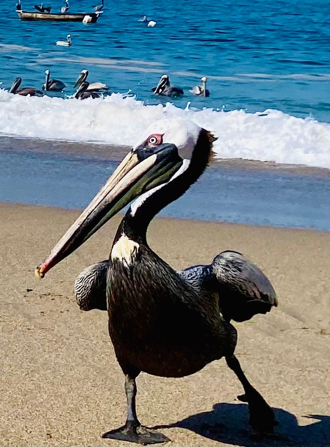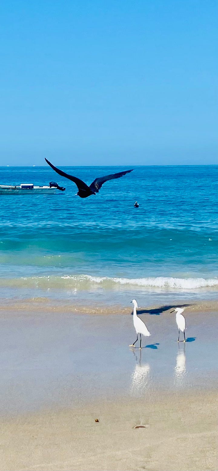 Normally when I am in Vallarta I wake early so I can walk the beach before the tourists come out, and those early hours are my favorite, because the sunlight slips across the water in long ribbons of gold and the birds are everywhere: pelicans gliding low over the waves before plunging suddenly into the sea, egrets stepping delicately through the shallows, magnificent frigate birds circling high above the bay like black kites suspended in the morning air.